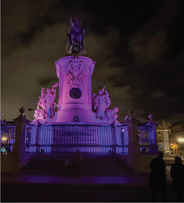 Entre as várias formas de participar, há uma que une memória e solidariedade: a Bandeira Recordar 1755. Inspirada na gaiola pombalina, junta o crisântemo a um padrão que evoca a azulejaria portuguesa, um tributo à identidade e resiliência de quem transforma história em força coletiva.